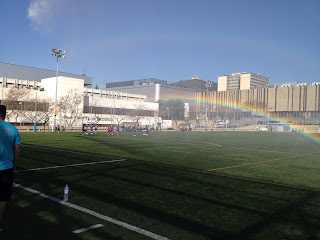 So today we woke up late and went to the training grounds next to Camp Nou. Jordi and Arnau took us thru tactical movements and drills the whole afternoon. Worked us thru movements and how to coach them thru the defensive, middle and attacking thirds. From there we went downtown and went to lunch and a futbol store. After that we had a scheduled friendly for the boys in Valldoreix. Spanish futbol in general is amazing to watch. FC Barcelona is the peak of that sport in this world, but to watch these smaller clubs that feed into the top clubs is equally impressive. We watched San Cugat and Club Esportiu Valldoreix tonight and it was flawless Spanish futbol. Skills and movement are all consistent with 99% of Spanish futbol. Inspiring and impressive to watch. I can only hope to bring back as much of this as possible to implement.